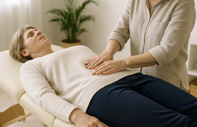 Die Behandlung findet in bequemer Kleidung im Liegen oder Sitzen statt und ermöglicht ein Eingehen auf die individuelle Situation. Durch sanfte Griffe mit Dehnen, Streichen, Druck und Bewegungen wird der Körper für die Atembewegung durchlässig.